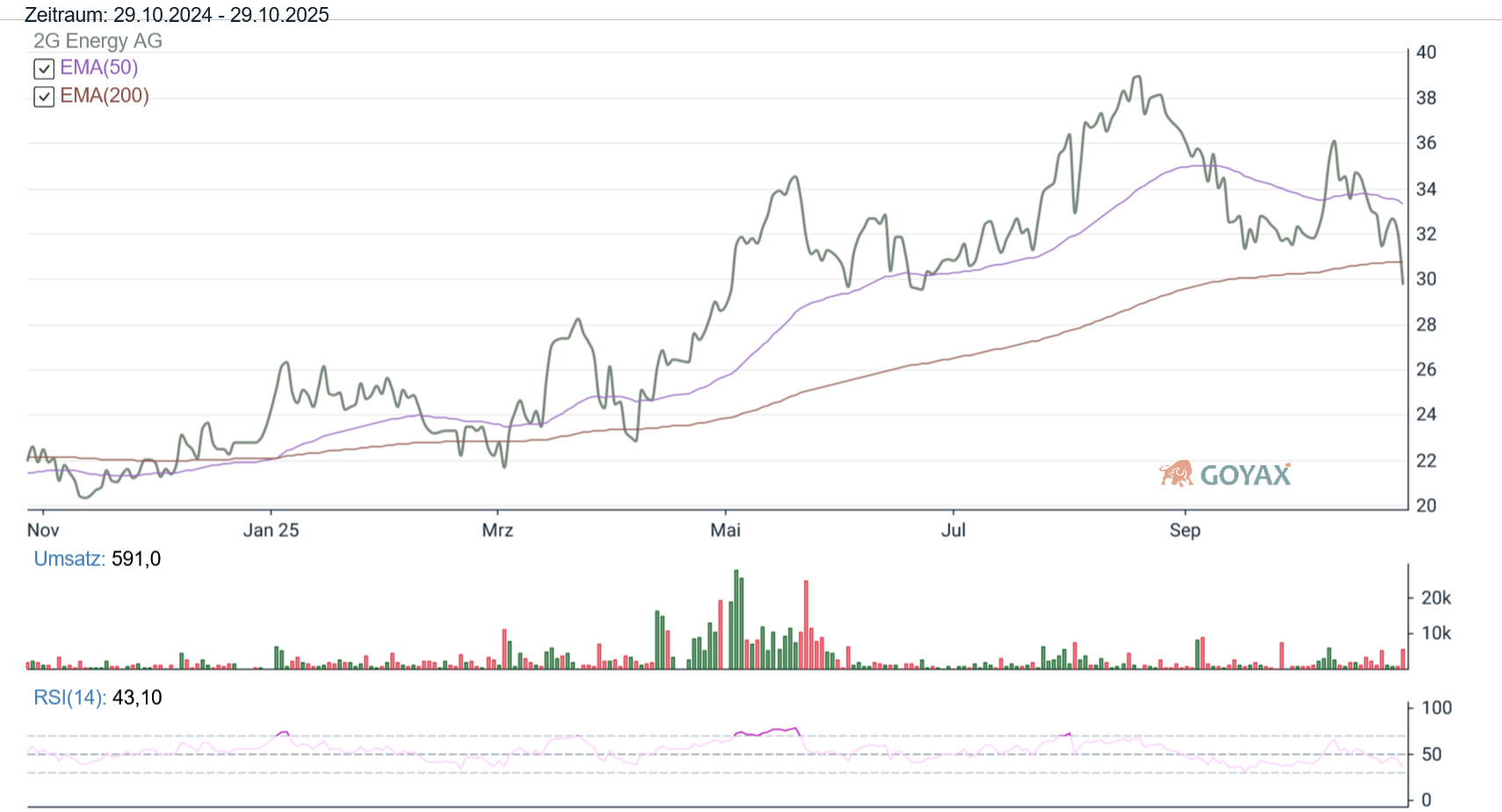 Die 2G Energy AG passt ihre Prognosen für das Geschäftsjahr 2025 nach unten an. Der erwartete Umsatz wird auf 380–400 Mio. Euro (bisher 430–440 Mio. Euro) und die EBIT-Marge auf 6,5–8,0 % (bisher 8,5–9,5 %) gesenkt. Diese Ankündigung löste erwartungsgemäß eine scharfe negative Reaktion an den Aktienmärkten aus, da die Diskrepanz zu den vorherigen, optimistischeren Zielen markant ist. Und die Gründe für die kurzfristige Dämpfung scheinen wirklich eher „vorübergehend“. Dabei sind zwei Hauptfaktoren für die Revision verantwortlich: