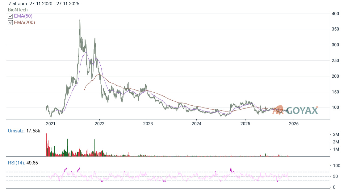 5-Jahres-Chart: BioNTech Aktie. Powered by Goyax.de
