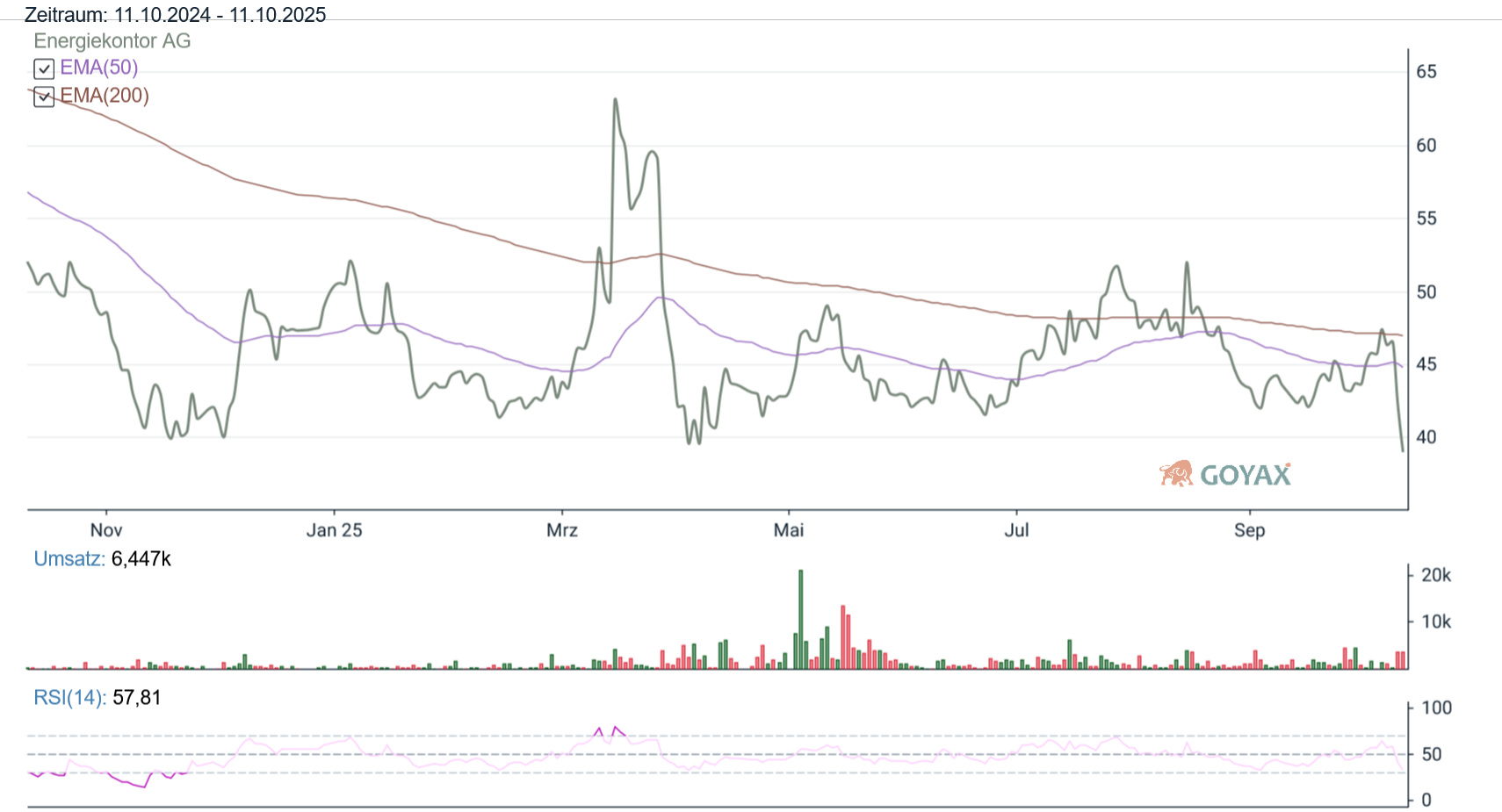Chart. Energiekontor Aktie. Powered by Goyax.de.