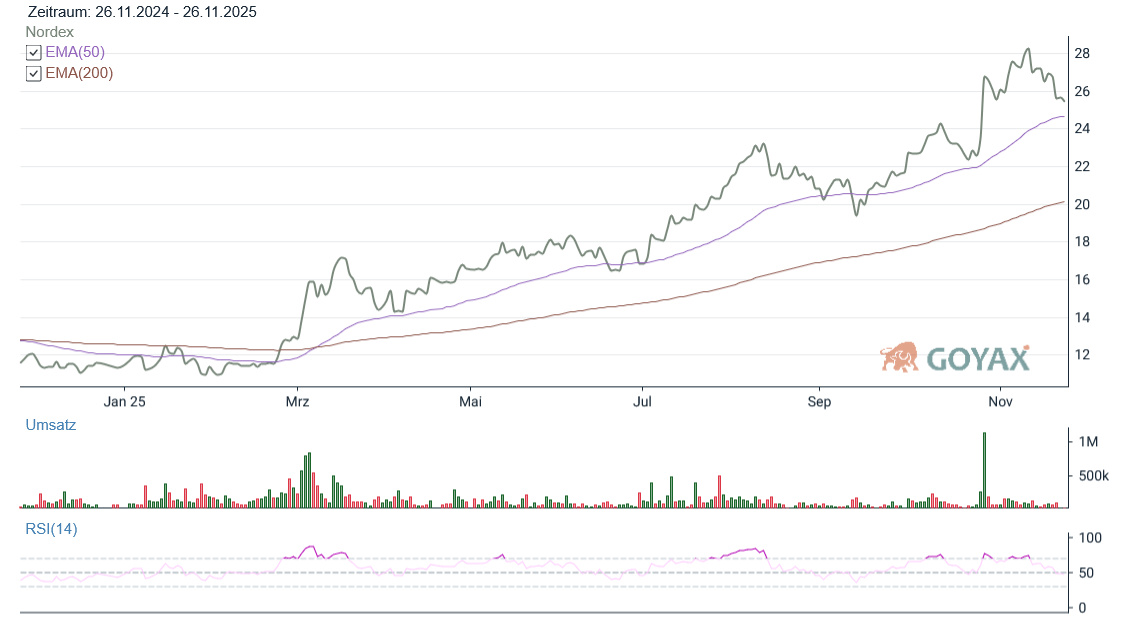 Chart: Nordex Aktie. Powered by Goyax.de.