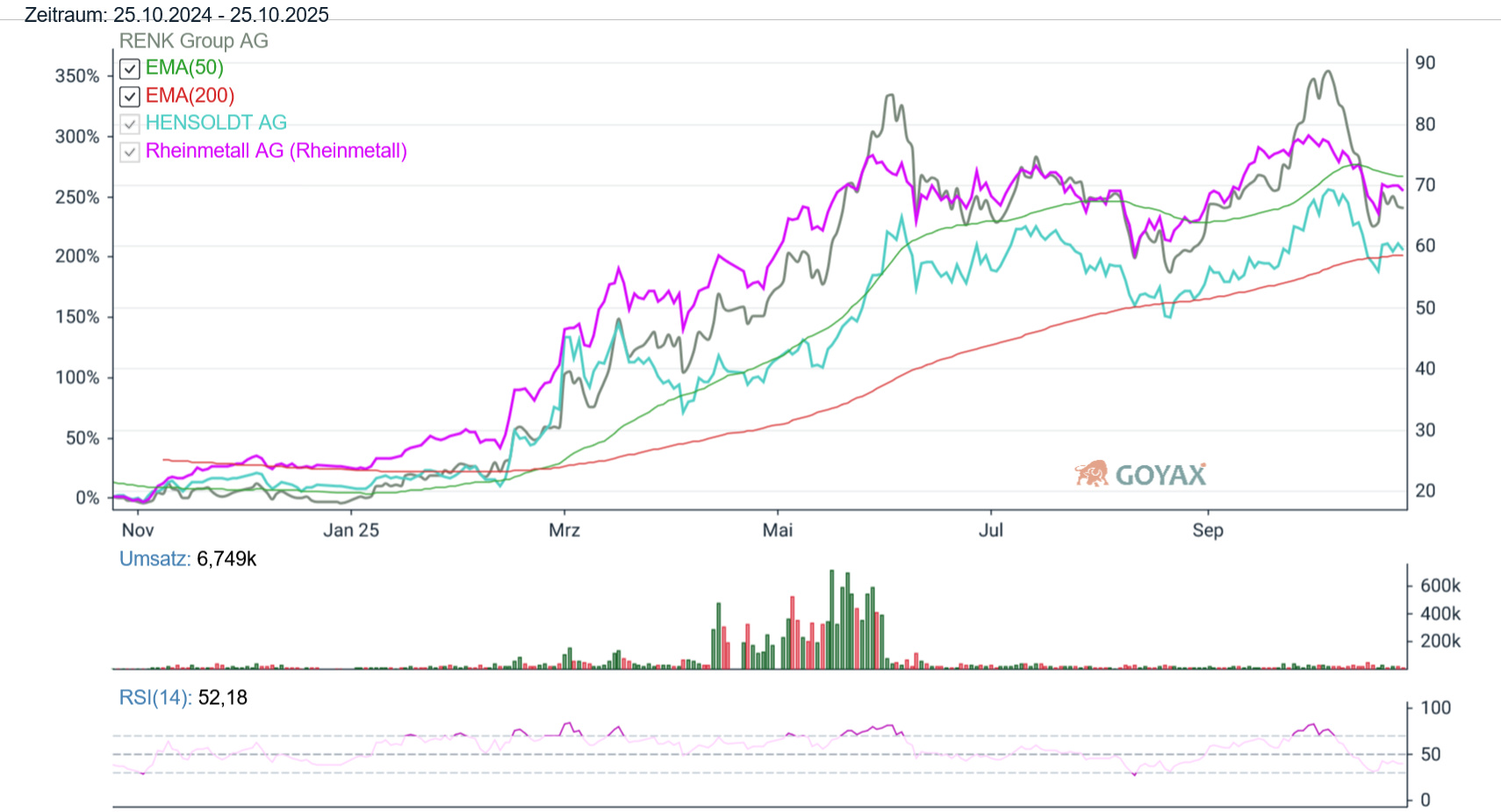 Die jüngsten Meldungen der RENK Group zeichnen das Bild eines Unternehmens im Höhenflug. Der Pre-Close Call vom 23. Oktober 2025 bestätigt eine solide Geschäftsentwicklung mit beeindruckenden Kennzahlen: Ein Auftragseingang von +47% und ein rekordhoher Gesamtauftragsbestand von 5,9 Mrd EUR bieten ein Fundament für Jahre. Der entscheidende operative Durchbruch mit dem neuen modularen Produktionskonzept in Augsburg unterstreicht, dass RENK nicht nur verkauft, sondern die Nachfrage auch effizient bedienen kann. Aber beim 9M PreCloseCall gab es auch kurzfristig nachdenklich stimmendes: Kurzfristiger Margendruck durch die neue Produktionsstruktur, was die Profitabilität wohl vorübergehend durch übergangsbedingte Störungen beeinträchtigen sollte.