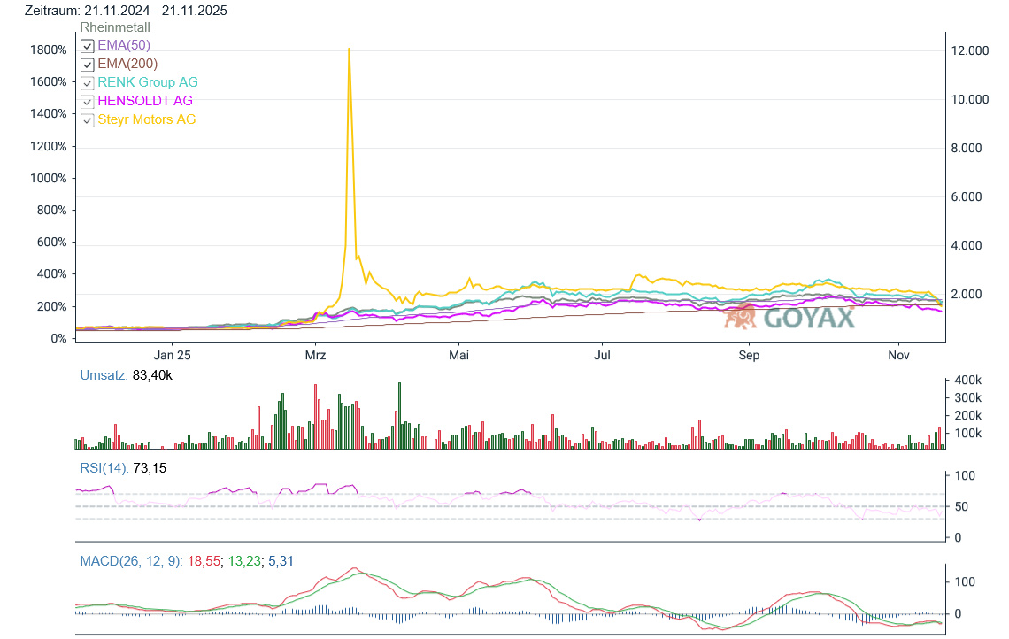Chart: Rheinmetall HENSOLDT RENK STEYR Aktie. Powered by Goyax.de.