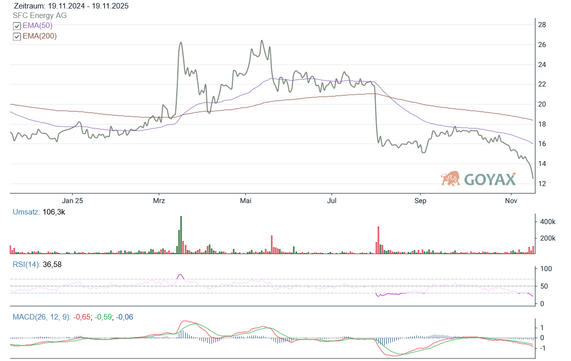 Chart: SFC Energy Aktie. Powered by Goyax.de.